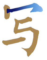 In the example diagrams for drawing characters we have put the main stroke in question in blue grading from the initial point of contact with the paper (dark blue) to where the brush leaves the paper (light blue). The other strokes that are needed to complete the character are shown in brown.